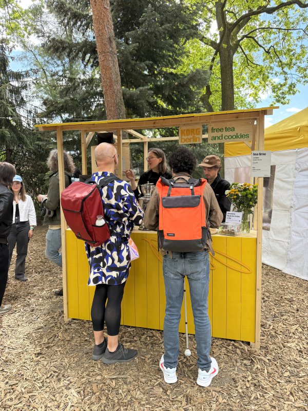 Der KORG Berlin Stand auf der Superbooth Messe. Gut zu sehen: die kleine Spendenbox für unseren Verein.